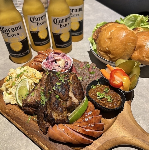 肉盛りBBQセット・サーロイン付き肉盛りBBQセット・ホルモン付きBBQセット・シーフード付きBBQセットの4種類をご用意◎単品メニューのご注文や飲み放題も2時間アルコール2500円/ノンアルコール1500円で付ける事が可能です。面倒な準備や火起こしもせずに手ぶらでご利用できますので、BBQ初心者や女子会にもおすすめです。