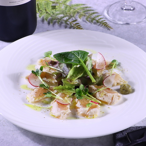 新鮮なホタテを軽く炙り、シェフ特製ソースで味付けした1品です。炙ることで引き立つホタテの旨味とソースの相性、盛り付けまでお愉しみください。~ステーキ以外にも旬の食材を使用したアラカルト料理を多数ご用意しています。コースでは味わえない特別な一品をお楽しみください~