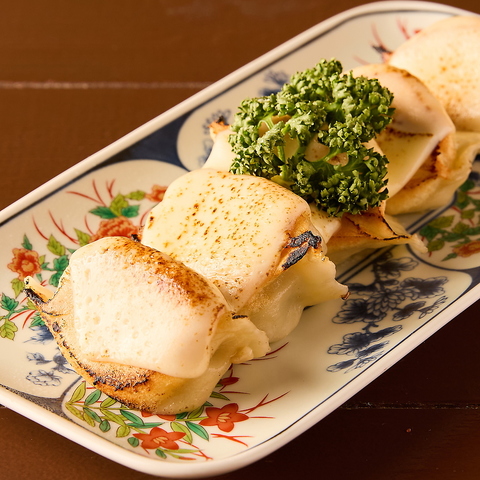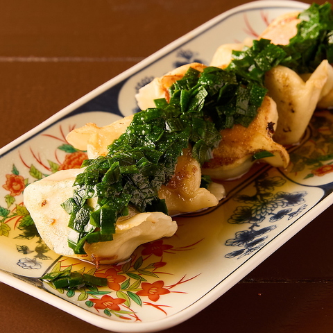 当店名物、注文後に鉄鍋で焼く餃子はコースでも!