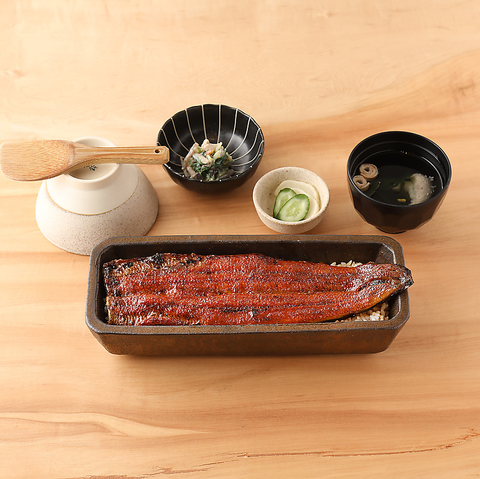 (蒲焼き一本ひつまぶし・小鉢・肝吸い・漬物)◆鰻の蒲焼き一本をひつまぶしでお楽しみいただける人気メニュー。そのままはもちろん、薬味を入れお茶漬けにしてお召し上がりいただくとまた違った鰻の美味しさに出逢えます。