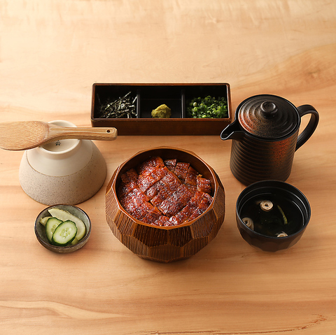 (蒲焼き一本ひつまぶし・小鉢・肝吸い・漬物)◆鰻の蒲焼き一本をひつまぶしでお楽しみいただける人気メニュー。そのままはもちろん、薬味を入れお茶漬けにしてお召し上がりいただくとまた違った鰻の美味しさに出逢えます。