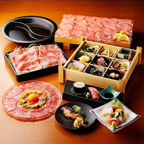 接待やお祝いなど、大切なお集まりにも選ばれています。当店自慢の飛騨牛(ユッケ、しゃぶしゃぶ、ローストビーフ、肉寿司など)をメインに、鮮魚など厳選食材を使用したコースをご用意しております。料理人の技が光る素材を活かした品々で心もお腹も満たされるひとときをお過ごしください。全席完全個室でご案内いたします。