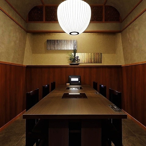 温かみと落ち着きを感じることのできるテーブル個室。3部屋・お席をつなげることも可能ですので、最大24名様までご利用いただけます。完全個室のため、周りを気にせず、会話やお食事を楽しめる空間ですので、ご宴会や接待にもおすすめ。