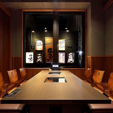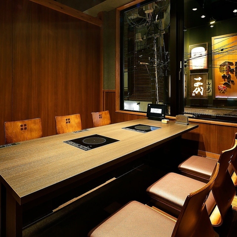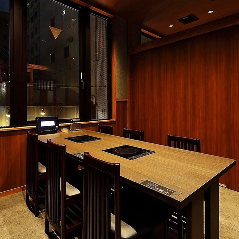 席数よりも、お客様の居心地を重視して設計。お客様同士の間隔はゆとりがあり、移動が楽に行える部屋の広さになっております。フラットなIHテーブル、タッチパネルオーダーで食事中の利便性にも配慮。その他、エレベーターや喫煙ルームも完備しており、接待にも利用できる居心地の良い店を目指しました。