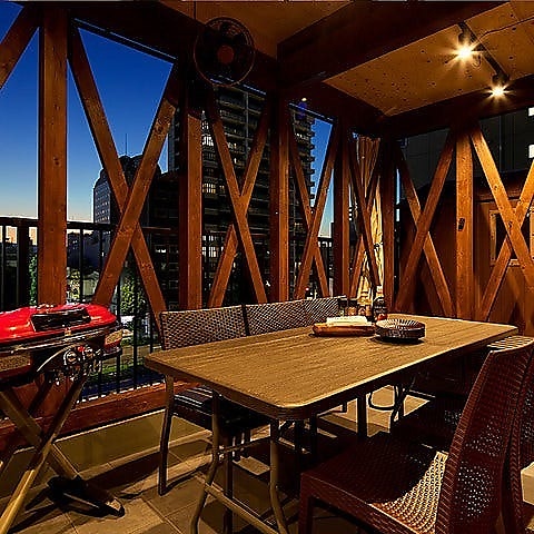 【テラス/テーブル席:2~8名様×3卓】雰囲気ある照明が居心地の良い非日常空間◎木の温もりに包まれた、ナチュラルでお洒落なテラス席。※屋根・パラソル付。夏場は扇風機・冷風機/冬場はブランケット・ストーブあり。禁煙席。店内に喫煙スペースあり/加熱式たばこ限定。