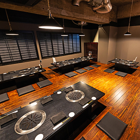 【木のぬくもりと黒をベースとしたシックな店内】各座席には無煙ロースターを使用し、煙を気にすることなくお食事を。広々としたテーブル4席と、奥には掘りごたつの座敷7席をご用意しております。小さいお子様のいるご家族やご宴会などのご利用にもおすすめです。◇みなとみらい/桜木町/馬車道/焼肉/厳選飛騨牛◇