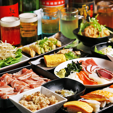 居酒屋メニューに加えてしゃぶしゃぶ、寿司、お造り、焼き鳥も食べ飲み放題♪満足できる事間違いなし!!