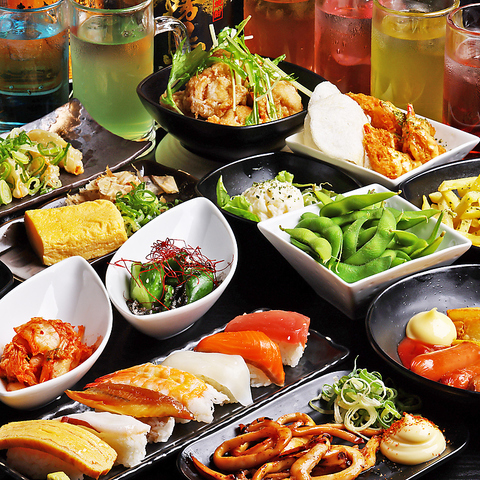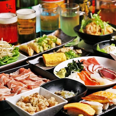居酒屋メニューに加えてしゃぶしゃぶ、寿司、お造り、焼き鳥も食べ飲み放題♪満足できる事間違いなし!!