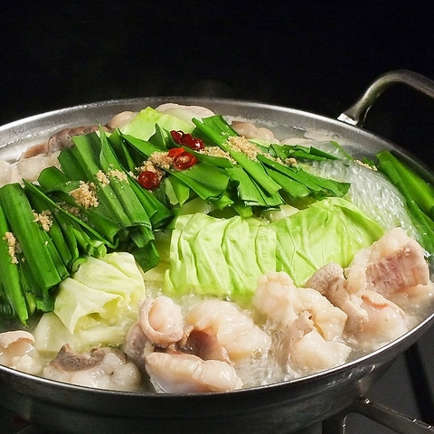 本格博多もつ鍋が絶品。新鮮な国産牛モツのみ使用。