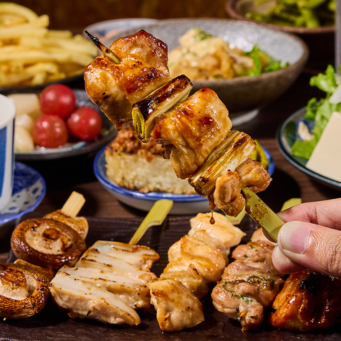 山口県長門にある深川養鶏場から仕入れたブランド鶏”長州鶏”は5種類のハーブを飼料に育てられ、臭みがなく柔らかいのが特徴!大きく切り分け串打ちした焼き鳥は食べ応え抜群で絶品♪高温の遠赤外線で焼き上げるので外はカリッと中はジューシーな仕上がりに!!【徳山 周南 焼き鳥 飲み放題 個室 貸切 誕生日 記念日 宴会 女子会 接待 飲み会】