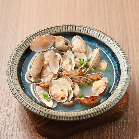 新鮮なあさりを贅沢に使用! 丁寧に砂抜きしたあさりを、風味豊かな日本酒と秘伝の出汁で一気に蒸し上げました。蓋を開けた瞬間に広がる磯の香りと、ふっくらと旨味を閉じ込めたあさりの食感がたまりません。残った熱々のスープは、最高の〆。お酒のお供はもちろん、そのままでも無限に楽しめる、優しい味わいの一品です。ぜひアツアツのうちにお召し上がりください!