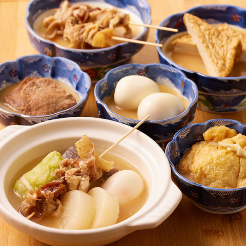 鰹節などで丁寧に作る一番出汁をあわせる名物のおでん!素材の本来の旨さが引き立つ黄金比!