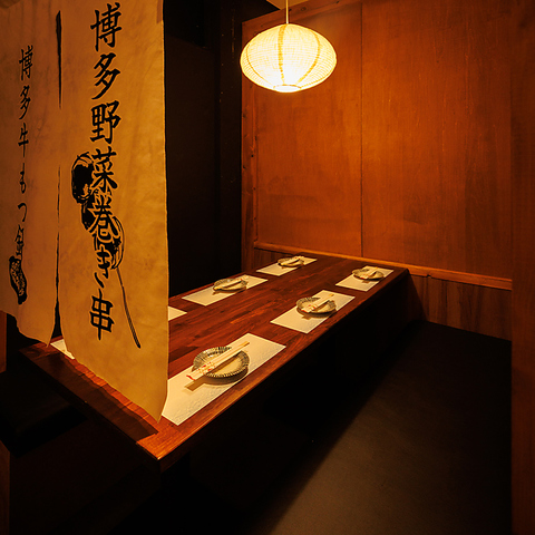 博多名物のれんが風情を添える半個室!天井から吊るされたやさしい灯りが、ゆったりとした空間に落ち着きを与えます!仲間内の飲み会や女子会にもピッタリ!会話と料理を満喫できるこだわり空間です!