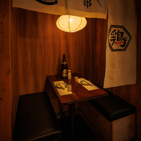 木目の壁に囲まれこじんまりとした半個室!二人でしっぽり楽しめるコンパクトな空間は、デートやサシ飲みにピッタリ!のれんがさりげなくプライベート感を演出し、ゆったりとした時間を楽しめます!