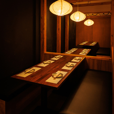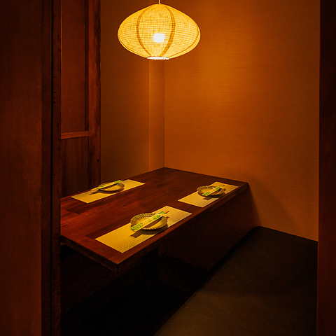 やわらかな照明がほんのりと照らす落ち着きある空間!扉付きの個室で、周囲を気にせず会話に花を咲かせられるのも嬉しいポイント!気取らずリラックスできる雰囲気が、料理の美味しさを一層引き立てます!
