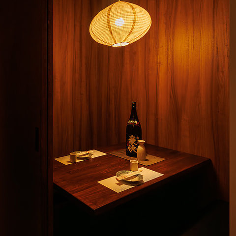 やさしく灯る照明が包み込む扉付き個室!周りを気にせず楽しめるため、デートやサシ飲み、大切な人とのひとときにピッタリ!落ち着いた色合いと静かな空間が、ゆっくりとした時間を演出してくれます!