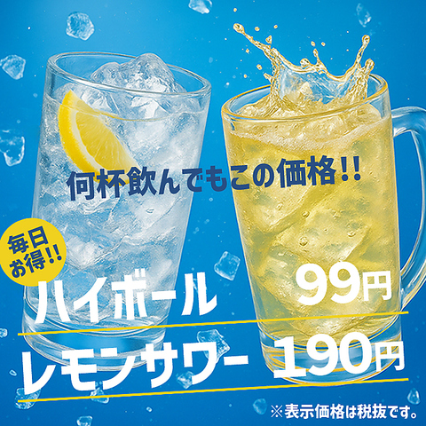 毎日お得!ハイボール99円&レモンサワー190円!!