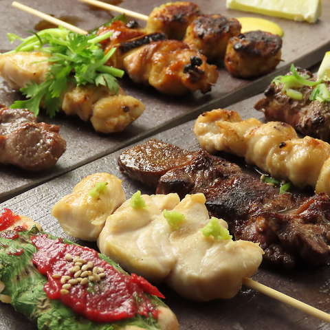 当店の焼き鳥は、愛知県産の名古屋コーチンや錦爽鶏を使用。名古屋名物のどて煮や、黄金の手羽先など名古屋メシを豊富にご用意。観光できた方も、名古屋の味に慣れ親しんだ方にも好評いただいている一品です。【名古屋駅/名駅/円頓寺/焼き鳥/焼鳥/貸切/ジン/名古屋メシ/デート/女子会/記念日/宴会/飲み放題/歓迎会/送別会/忘年会】