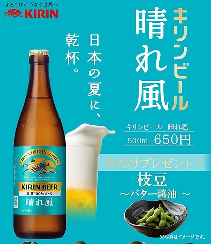 | ビール | 生ビールキリン一番搾り/シャンディガフ |