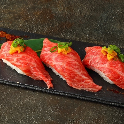 鮮度抜群のお肉をお寿司で愉しむ。自慢の肉寿司はもちろん、お酒に厳選素材も豊富に取り揃えております。