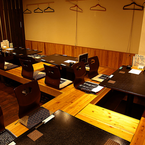 テーブル席(掘りごたつ式)は仕切りを下げれば半個室型として、気兼ねなくゆっくりとおくつろぎいただけます