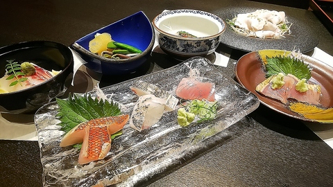当店の売りであるおしゃれで非日常的なカウンターで、京都の名店で修行した料理長が一品一品調理する姿をご覧頂きながらお楽しみいただけるコース(厳選日本酒飲み放題付)です。※開催日はお問い合わせください