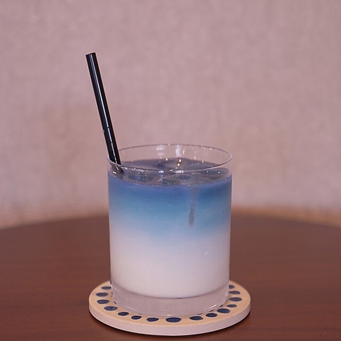 店内の食器やドリンクに使われる青色は、海の色をイメージ。穏やかで深いブルーが広がる空間は、まるで海の中にいるかのようなリラックス感を演出しています。目にも心にも優しいこの青の世界で、日常を少し忘れてゆったりとしたひとときをお過ごしください。