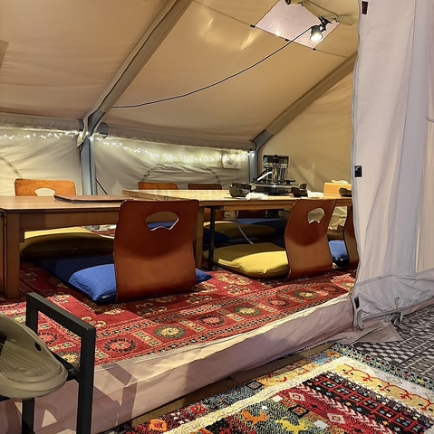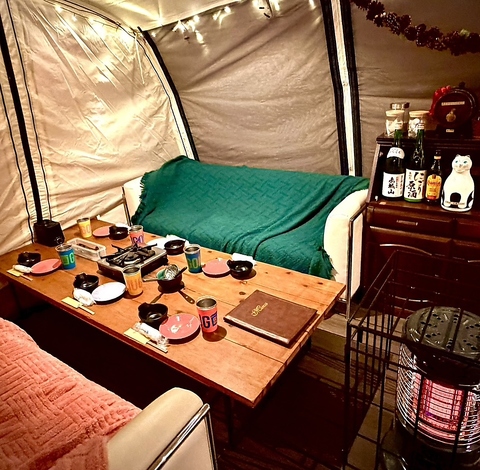 冬は2~6名様でグランピング気分が楽しめる個室テント席を3席限定でご用意!おしゃれなテント席でホカホカお鍋が楽しめます♪