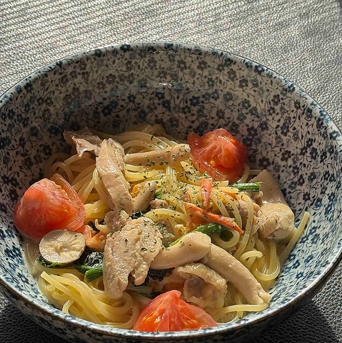 コクのあるクリームと柚子胡椒がベストマッチ!トマトやほうれん草などの野菜も入ってヘルシーです(鈴鹿店限定メニューです)