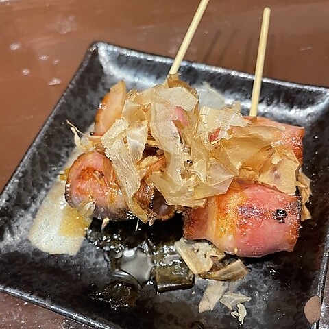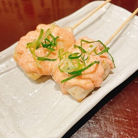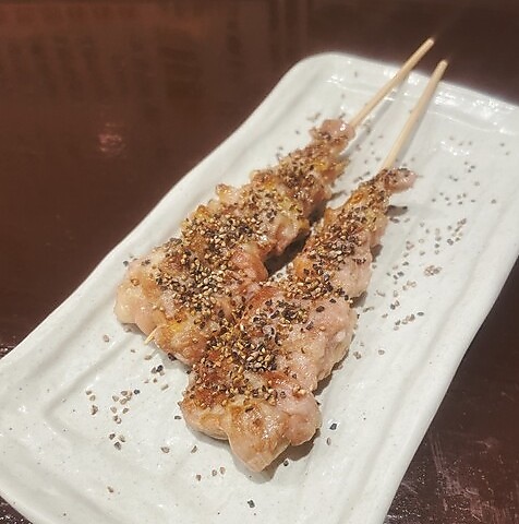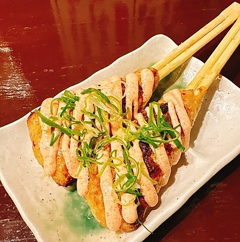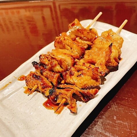 その日の気温などを考慮して炭を起こし、素材の特性に応じて火力を使い分けています。この熟練の炭加減によってタレの美味さが引き立ち、身も柔らかな自慢の焼鳥が出来上がります。中でも1番人気は自家製「濃厚つくね」。旨みを閉じ込めるために一度ふっくら蒸すのがポイントです♪