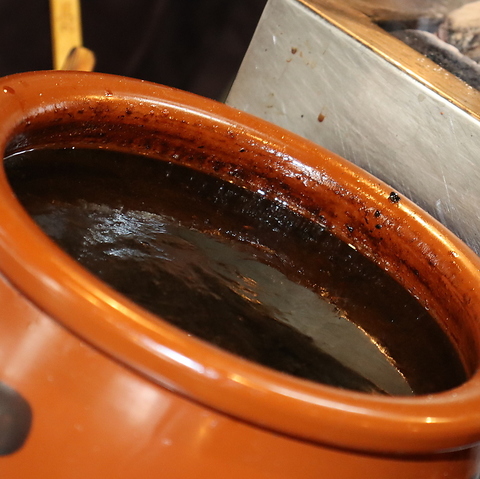 当店のたれは九州の溜醤油とガラを半日以上火にかけてベースを作る、濃厚で甘めのもの。毎日継ぎ足すことでその濃厚さが際立っていきます。豊藤が使用する土佐備長炭の薫り、阿波尾鶏や熟成鶏の旨味・脂が沁みた極上のたれで、本日も当店の焼き鳥をご賞味ください。