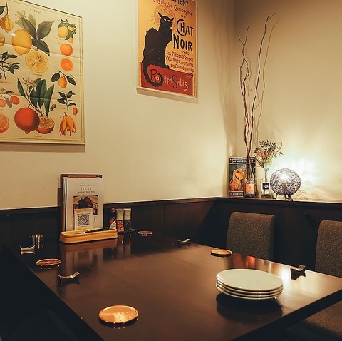 女子会や誕生日、飲み会…等様々なシーンで使えるテーブル席。人数に応じてお席をご用意させていただきます。店内はシックに落ち着いた空間なので、デートにもおすすめ。雰囲気のいい店内&おいしい料理とお酒で盛り上がること間違いなし♪