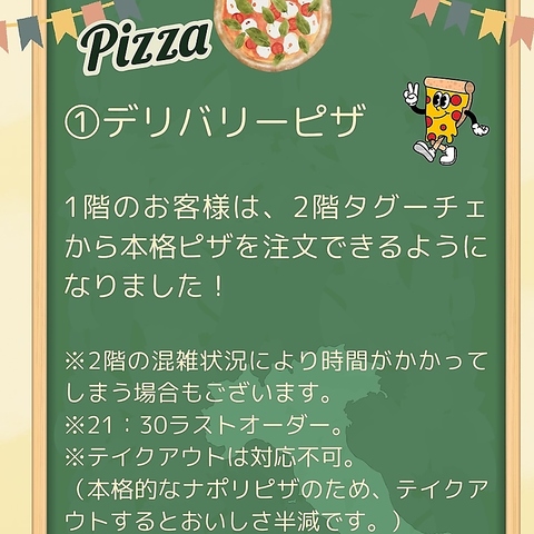 1階のお客様も、2階の本格ピザがご注文可能に!※2階の混雑状況によりお時間がかかる場合もございます。
