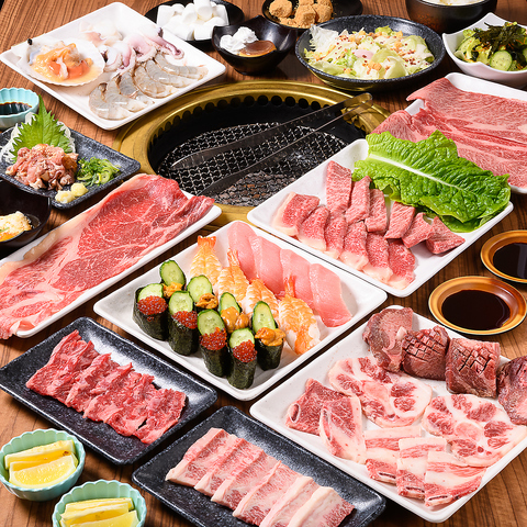 YA喜楽自慢の焼肉・海鮮、そして喜楽のお寿司をお腹いっぱい楽しめるおすすめコース!