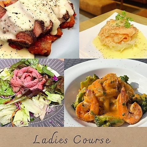 『濃厚海老クリームパスタ』や『ローストビーフのサラダ仕立て』など、前菜からスイーツまで、当店自慢のお料理が楽しめる女子会コースとなっております◎(クーポン利用で飲み放題を+1800円でお付けできます。)