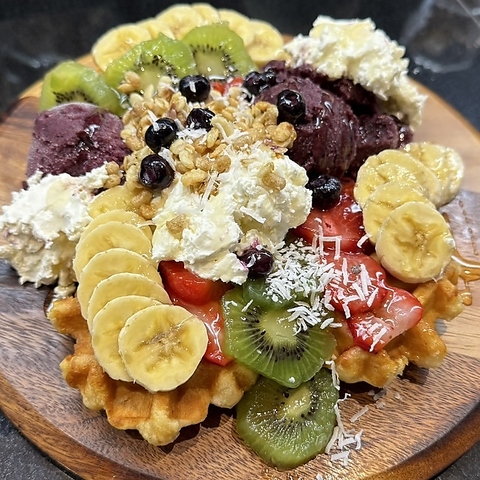 ワッフルや季節のフルーツ、アイス等をもりもり盛ったパーティボウルは、女子会にぴったり♪お一人様もOK!
