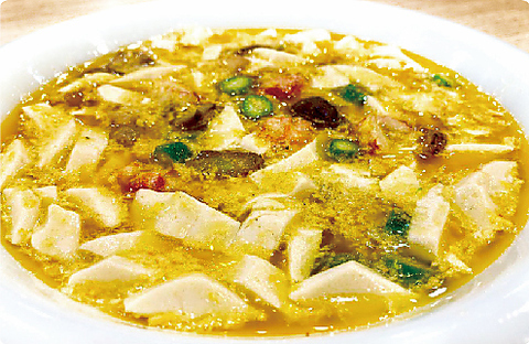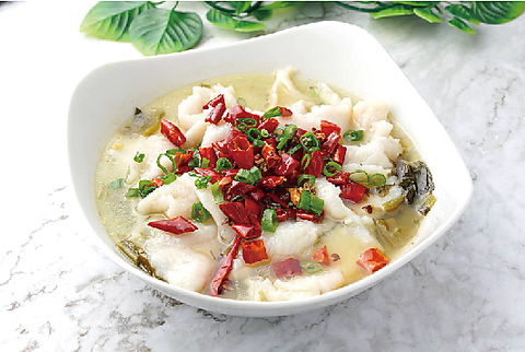 繊細な味わいが広がる白身魚の四川風煮込み。やさしい口当たりの魚の旨みが豊かに広がり、濃厚なスパイスとの絶妙なバランスが絶品!辛さが苦手な人も安心して楽しめます!絶妙な辛さと旨みのハーモニーをぜひ堪能してください☆心と体をリフレッシュさせる一皿だからこそ、食べる人に幸福感を与えること間違いなし!♪