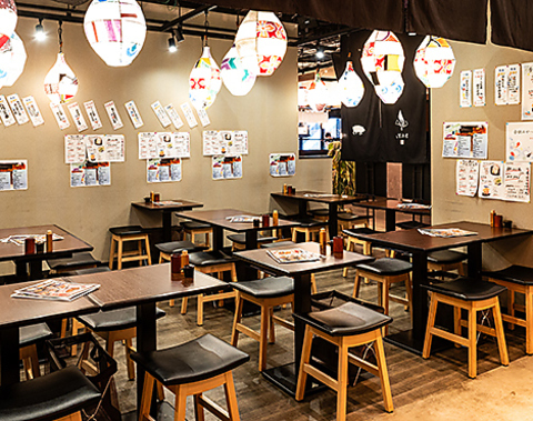 昔ながらの大衆レトロな提灯が特徴な店内は、宴会にもおすすめです!一人でしっぽりと飲み会やご友人、会社の仲間でのお食事にも最適です♪仕事帰りにふらっと飲みにお立ち寄りください!大規模宴会も可能!ご相談ください。また、店内はテーブルと椅子をご用意しておりますので、ゆったりとした時間をお過ごし頂けます。