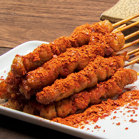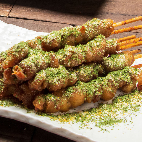 名物の絶品「ぐるぐるとりかわ串」はビールとの相性抜群!そのほか福岡の名産品を数多く取り入れています!※価格は10本の価格となります。