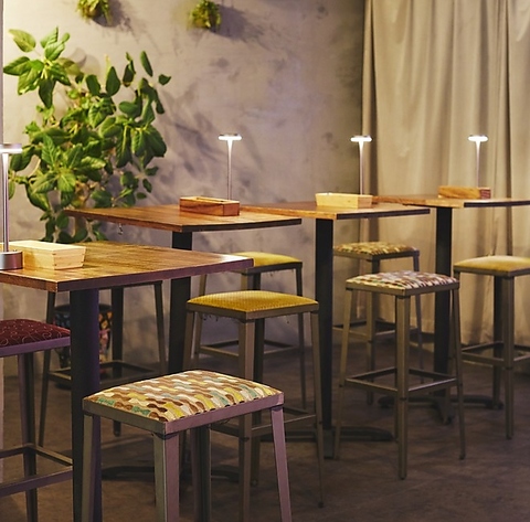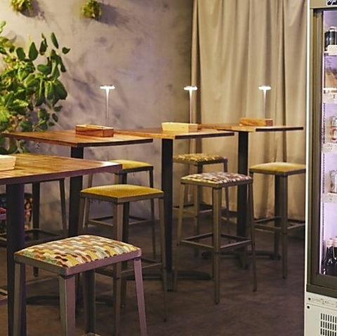 店内入口側には、スタンディング・着席どちらでも利用可能なテーブル席をご用意。様々なシーンに対応可能です!