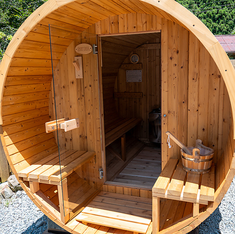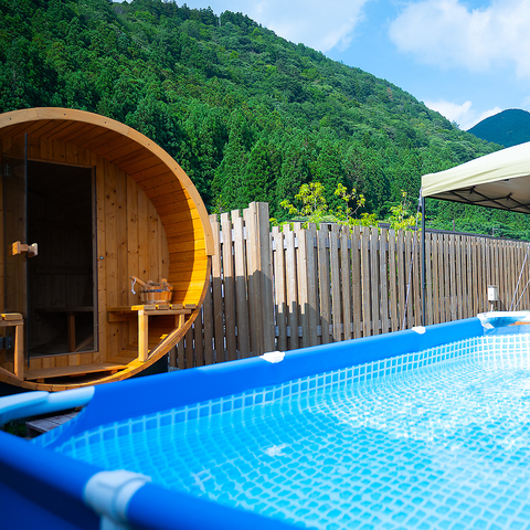 バレルサウナでロウリュウして山水プールでととのうプライベート空間。