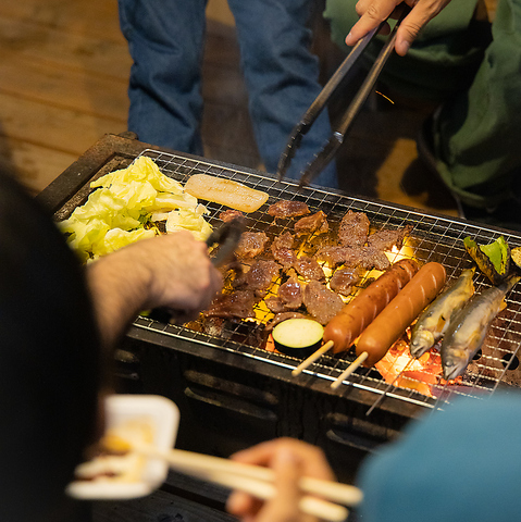 バーベキューコンロをはじめ、テーブル・椅子・食器・調味料など、バーベキューに必要な様々なツールをご用意。買い物いらずの手ぶらでバーベキューが楽しめます!角甚ならではのジビエ肉は猟師が射止めた新鮮なものをご用意♪お野菜とジビエ肉をご用意したセットもありますので、手ぶらでお越しいただけます!
