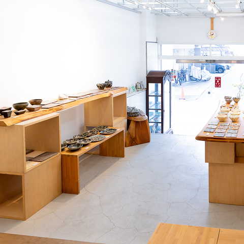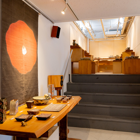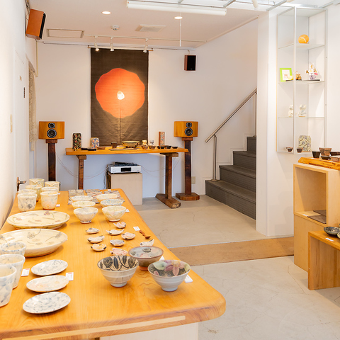 1階ギャラリーは、自然光が差し込む開放的な空間。器や作品を、ゆったりとした距離感で鑑賞できます。街に面した明るさと落ち着きが共存する、気軽に立ち寄れる展示フロアです。