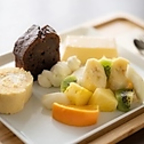 スイーツプレート盛り1,100円果物との盛合わせでお召し上がりいただきます。要予約でお願いいたします。