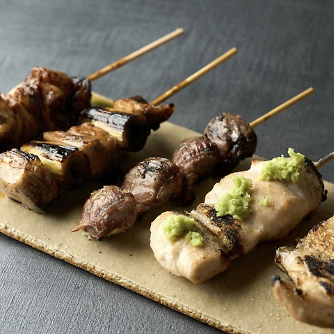 もも肉のたたき、鶏からだし巻きたまごなどのこだわりの人気メニューを盛り込んだ贅沢コース!焼鳥は朝どれの新鮮な大山鶏を使用し、備長炭でこんがりと焼き上げることで風味を引き立てます!※飲み放題のL.Oは90分です。