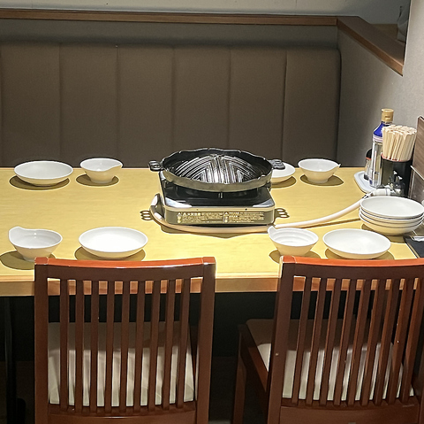 大画面のテレビの傍にお席がある為、スポーツ観戦などしながらジンギスカンや逸品料理を楽しくお腹いっぱいお食事ができ、お仕事でのご宴会などにもご利用いただけます。各テーブルは事故防止のためテーブルの足を床に固定していますので軽くぶつかった程度では動かないように設計しております。