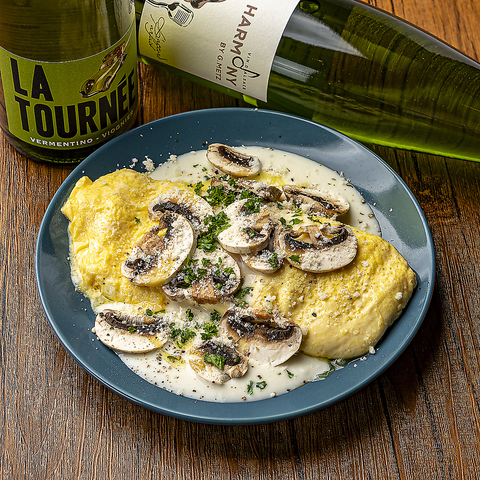 ふわとろのチーズオムレツに白ワインとトリュフオイルで香りづけた逸品。チーズ、白ワイン、トリュフの香りが絶妙にマッチしており食欲をそそります♪当店の人気メニューの1つとなっておりますので、是非一度お召し上がりくださいませ◎