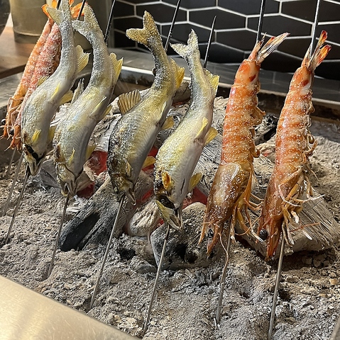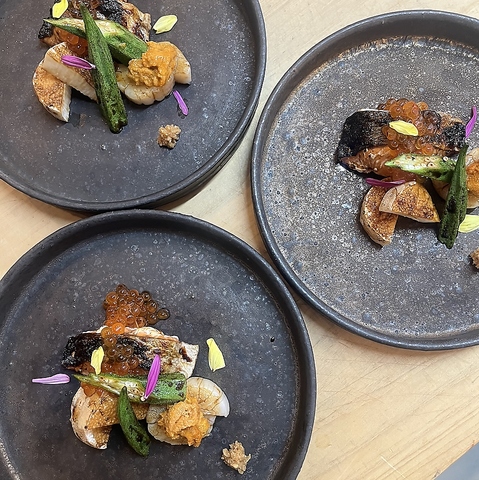 コースだけでなく、一品でのご注文も承っております。こちらも固定ではなくその日その日のお品書きをご用意しているため、当日の出会いをお楽しみいただけます。店内囲炉裏で旨味をギュッと閉じ込め焼き上げた炭火焼きは当店名物の一つ。じっくり焼くことにより旬の厳選食材は香ばしさが増し、さらに美味しくいただけます。