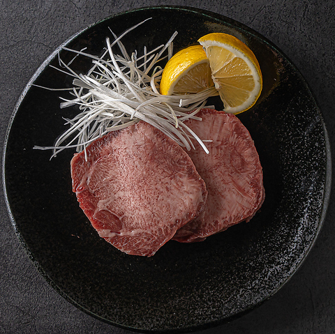 焼肉グラムのイチオシ、ネギ塩タン。たっぷりのネギ塩を絶妙な厚さのタンでまいて、無煙ロースターでふっくら焼き上げる、自慢の逸品です。
