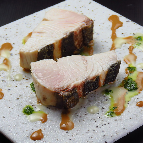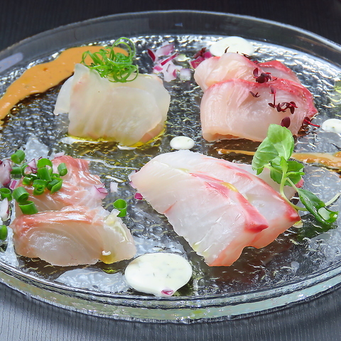 鮮魚のカルパッチョは、季節それぞれの鮮魚を厳選して、最良のものを仕入れてご提供しています。その時々の状態を見極めて、鮮度の良い状態でご提供したり、熟成してご提供したりしています。コース料理の一つとしても光る存在感で、見た目の美しさと食欲をそそる味わいが魅力!お酒と共に楽しむ至福の時間を、ぜひ体験してみてください♪